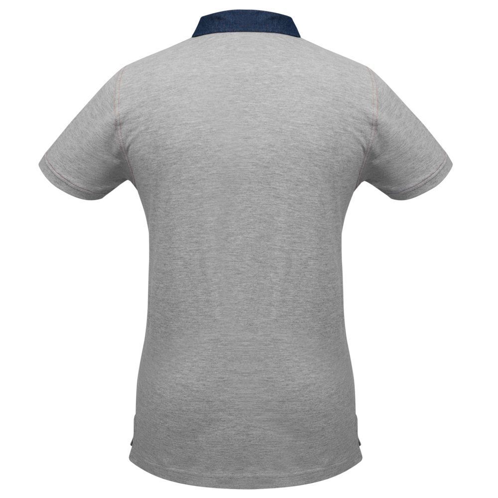 Рубашка поло с джинсовым воротником и контрастной отстрочкой.
