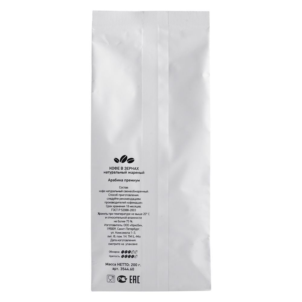 Кофе упакован в фольгированный пакет с дегазирующим клапаном.