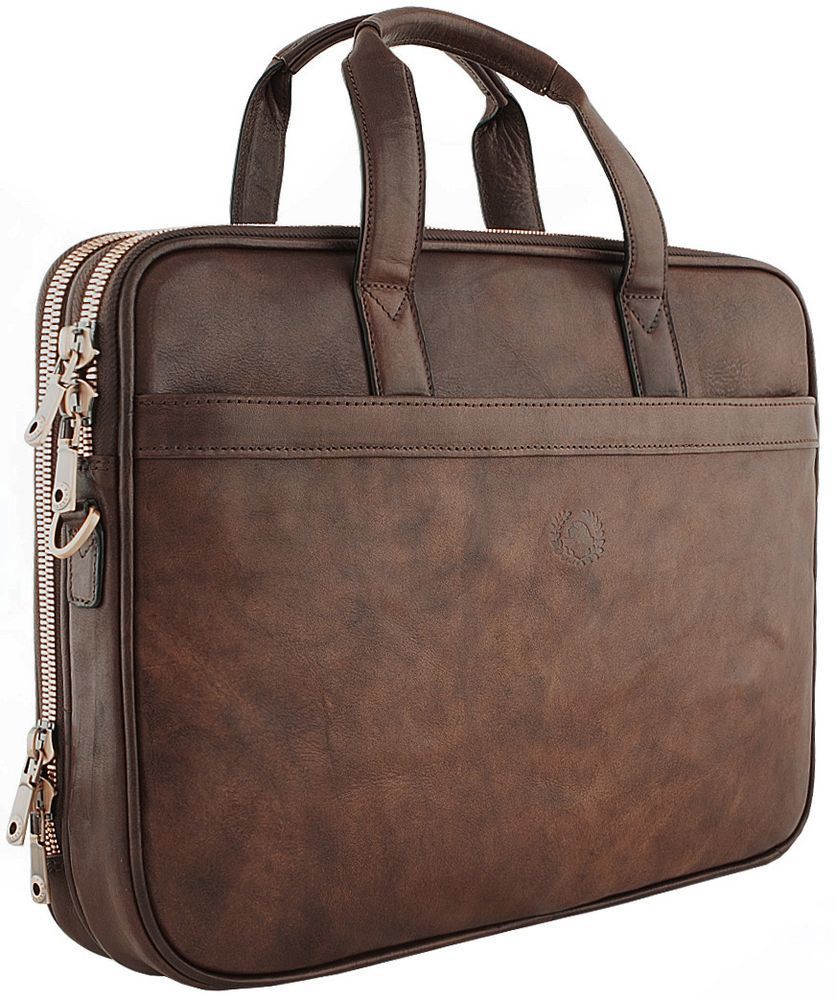Лучшая кожа итальянского производства вакетта, вручную окрашенная в эффектные коньячные и темно-коричневые цвета, а также логотип в форме оливковых ветвей, фурнитура под медь и изящные элементы плетения на ручках делают аксессуары Vintage роскошным деловым подарком.