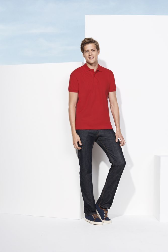 Кроеная рубашка поло из плотного трикотажа. Планка с 2 пуговицами в тон, запасная пуговица на внутренней боковой строчке. Воротник и нижние края рукавов в резинку.