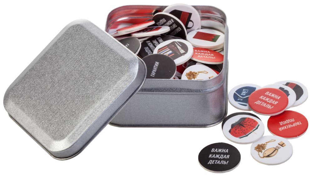 Преимущество плотной жестяной коробочки в том, что ее используют и после того, как подарок распакован. В нее складывают всякие нужные мелочи, поэтому такая упаковка с логотипом всегда будет перед глазами ее получателя.