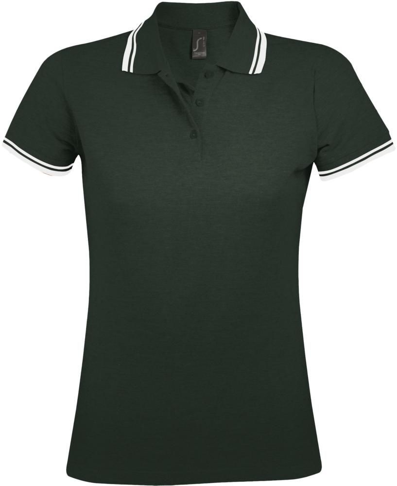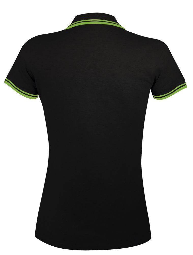Рубашка поло женская PASADENA WOMEN 200 с контрастной отделкой, черная с зеленым