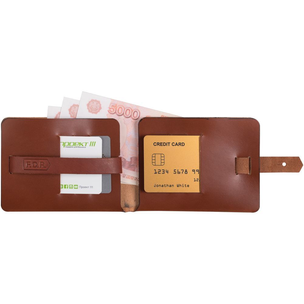 В кошельке предусмотрены отделения для купюр и кредитных карт.