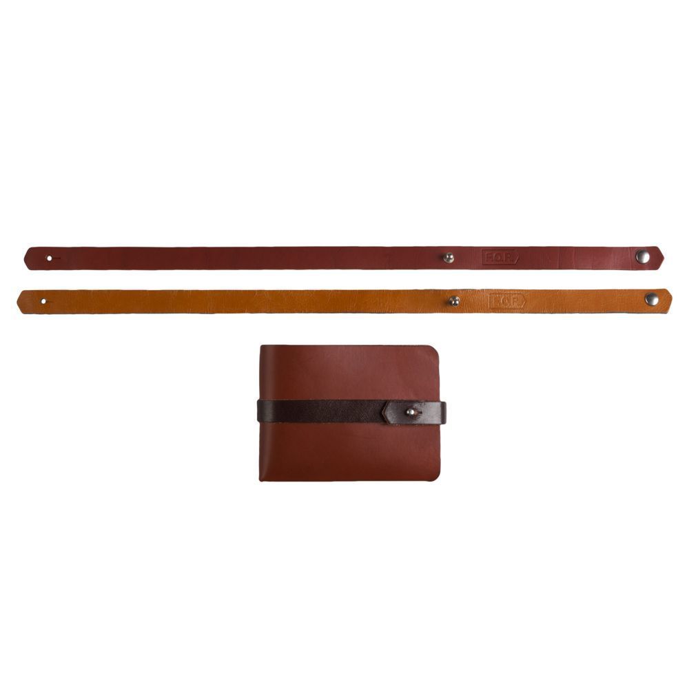 Две полоски плотной дубленой кожи, два грамма металла и ни единого шва — таков основной конструктивный принцип всех предметов коллекции Leaf. Выкройка складывается по сгибам и скрепляется контрастным ремешком, который фиксирует изделие в закрытом виде.