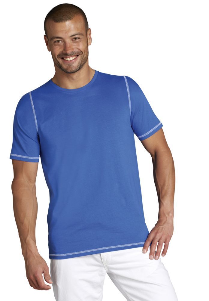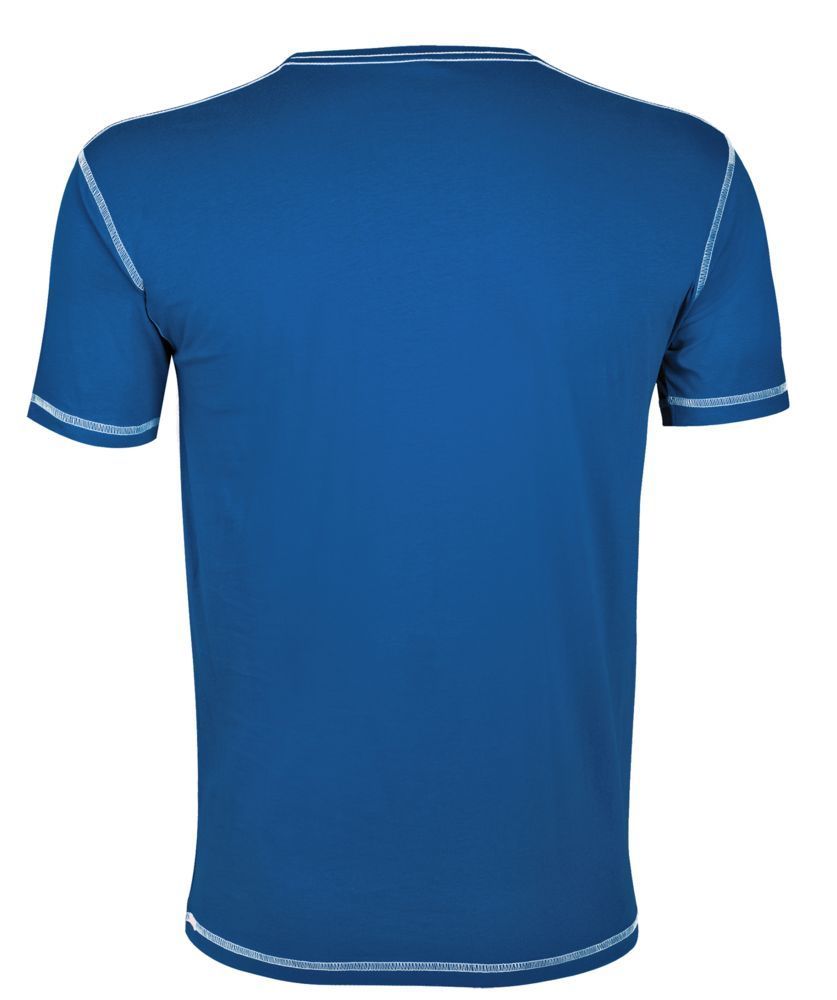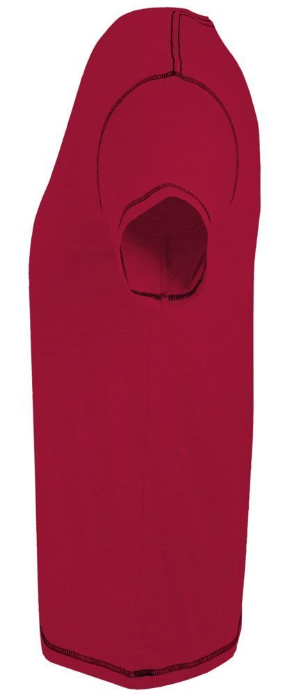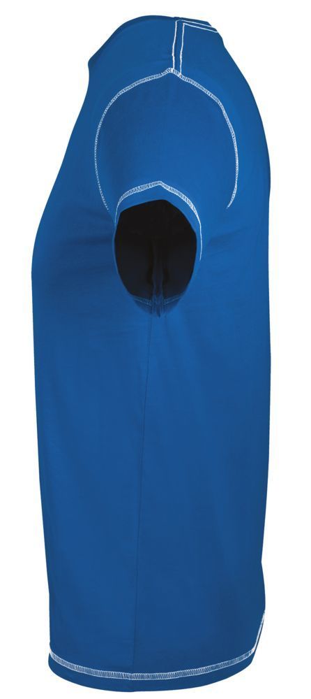 Облегающая приталенная модель. Укрепляющая тесьма контрастного цвета по вороту, ворот связан резинкой с эластаном. Контрастные швы по низу рукавов, на плечах и нижней части футболки. Контрастная двойная отстрочка плечевого шва.