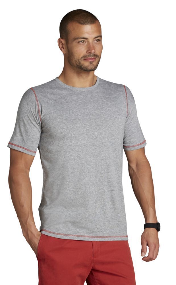 Футболка мужская с контрастной отделкой MUSTANG 150, серый меланж c красным