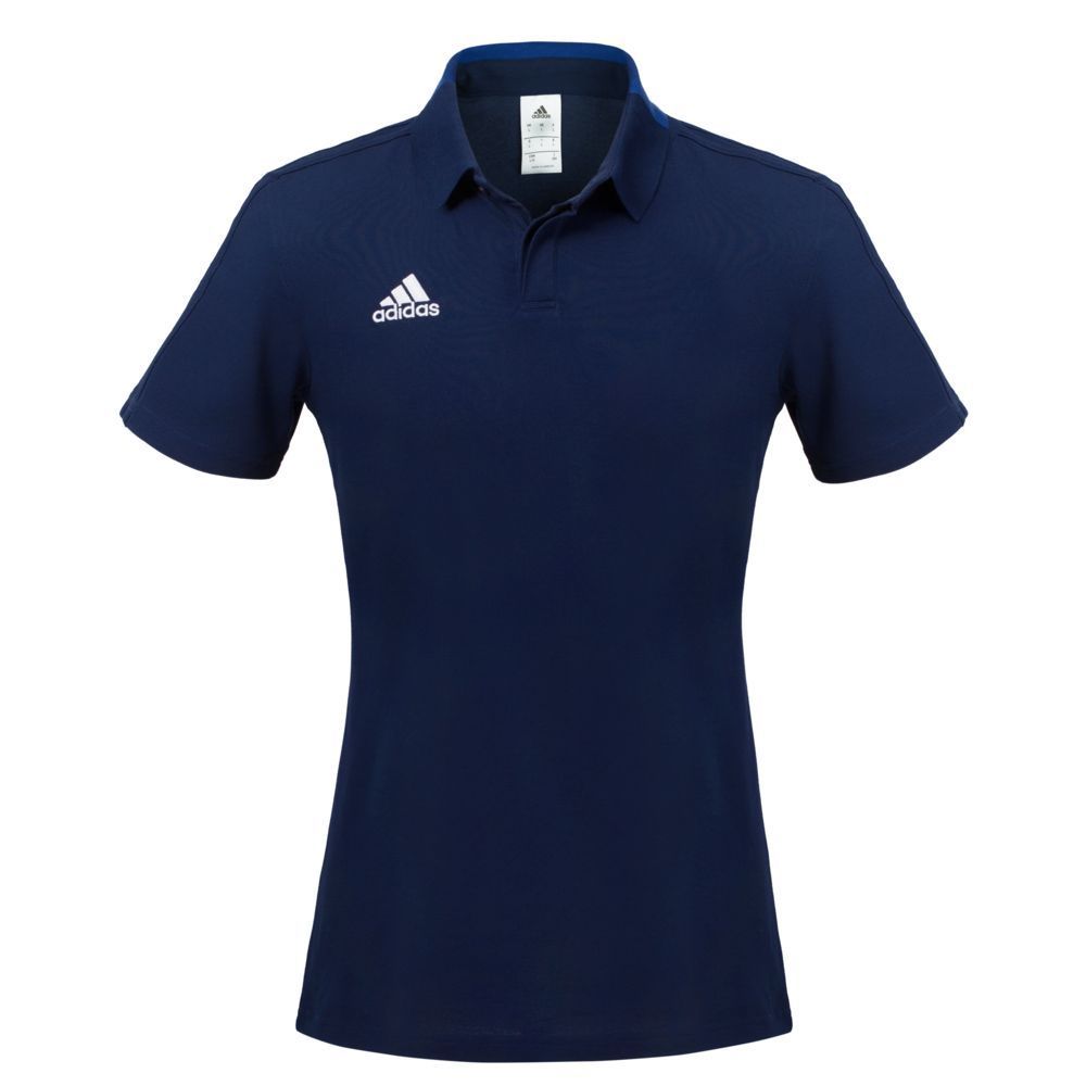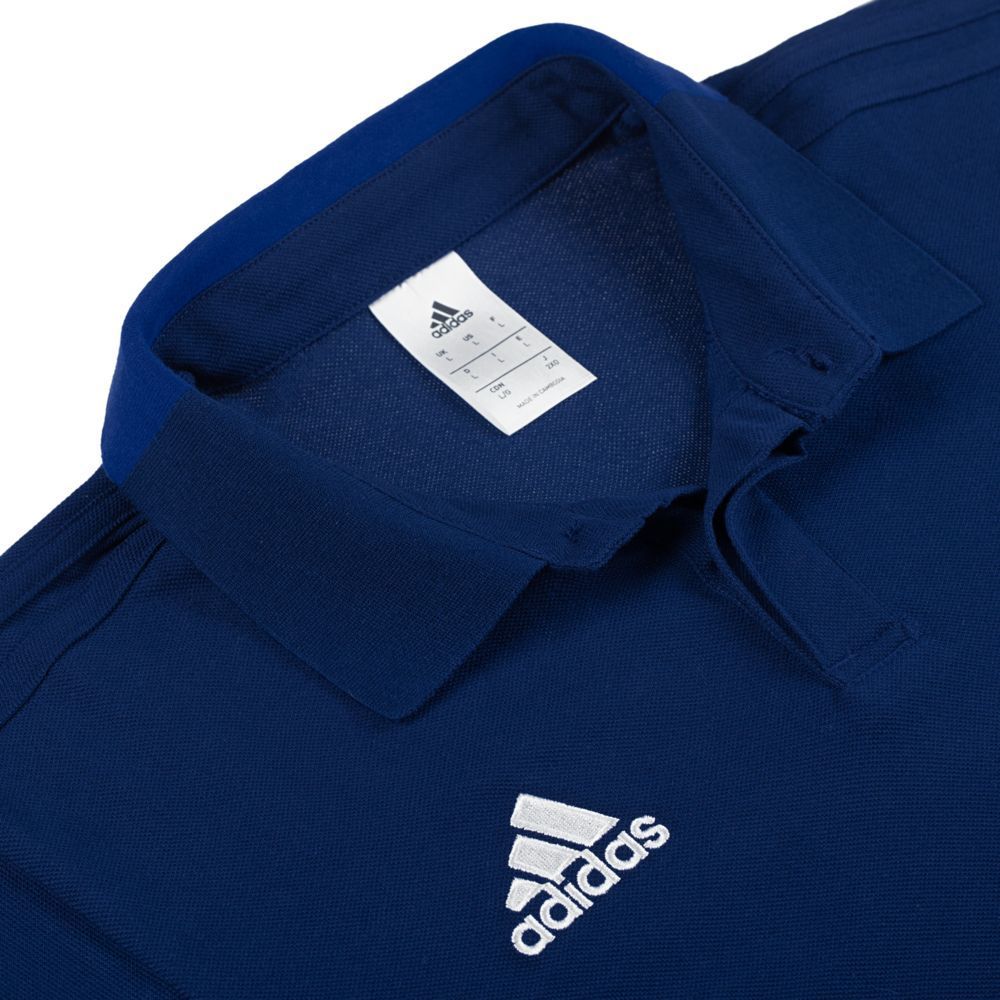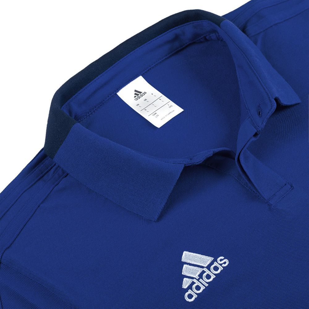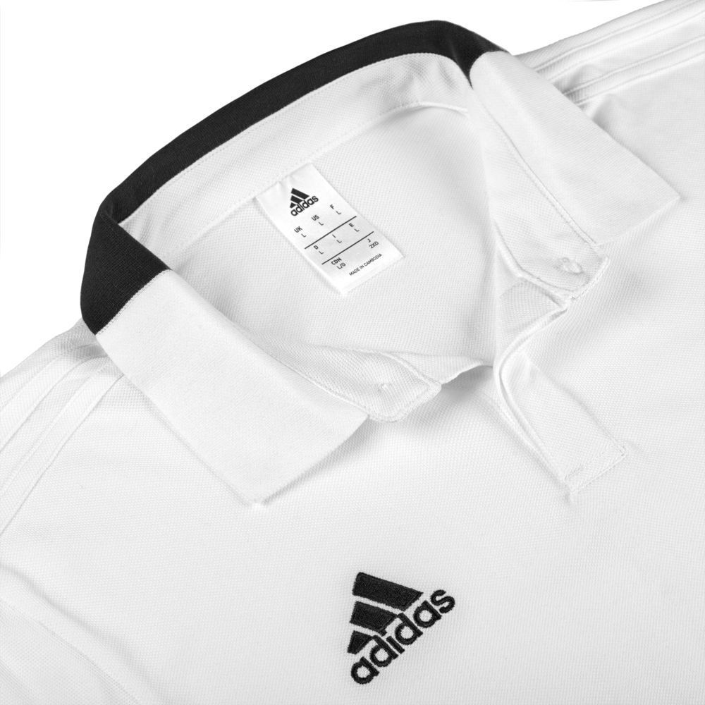 Планка на 2 пуговицы, воротник-резинка 1х1, вышитый логотип adidas справа на груди, три полоски в тон на плечах и рукавах.
