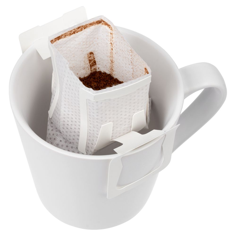 Дрип-пакет — легкий способ альтернативного заваривания натурального кофе прямо в чашке. Вам потребуется только любимая кружка и горячая вода: вскройте фильтр-пакет по линии отрыва, разместите его на чашке и медленно пролейте 150-200 мл воды через молотый кофе. Если хотите получить напиток покрепче — оставьте дрип в кружке на 2-3 минуты.