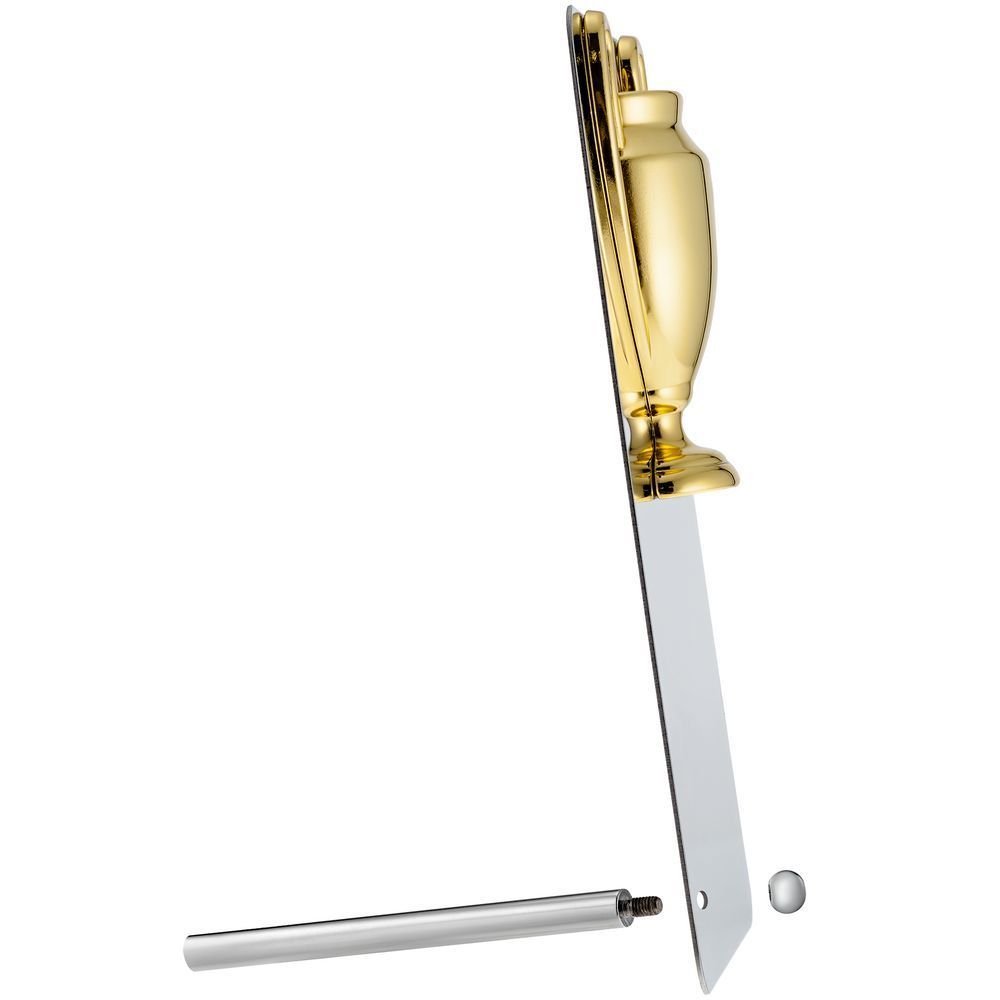 Никелированная плакетка с глянцевым кубком золотистого цвета.