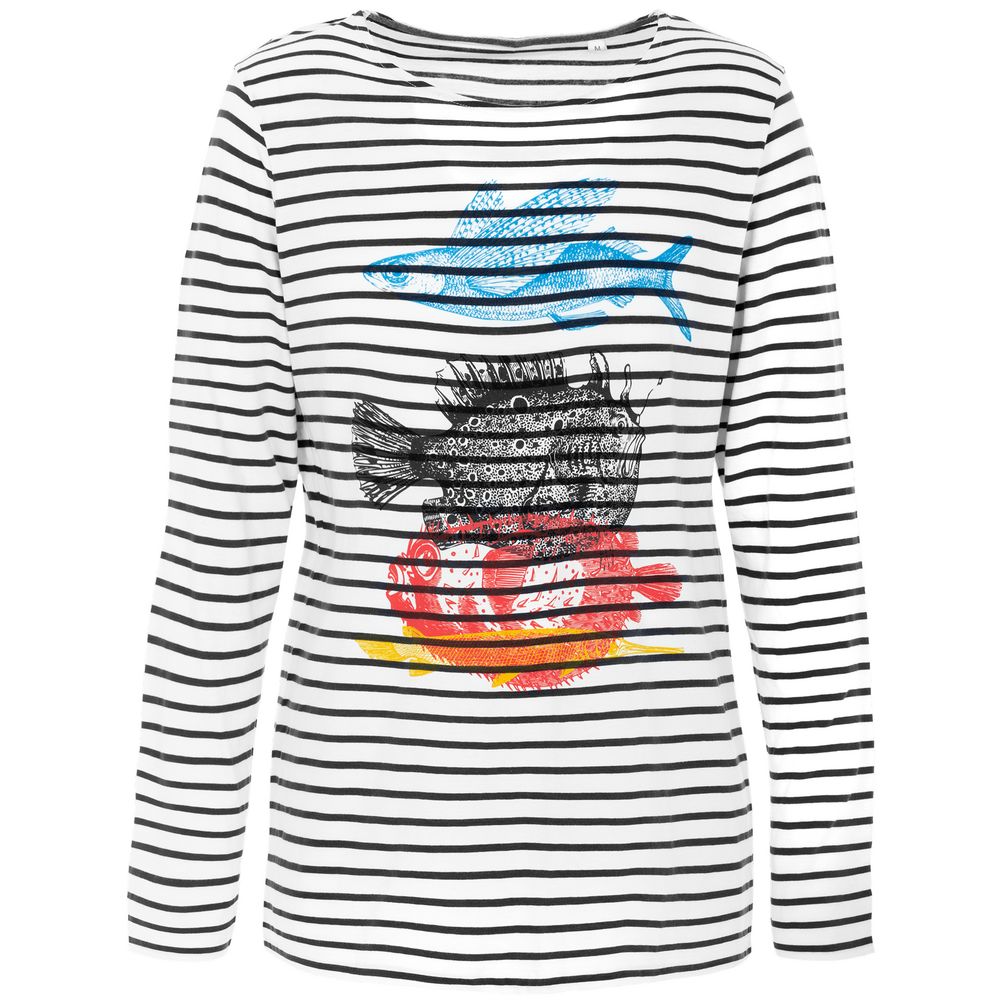 Футболка женская с длинным рукавом «Морские обитатели», белая с темно-синим