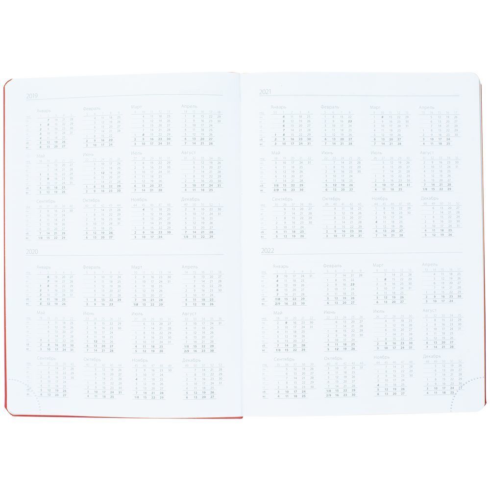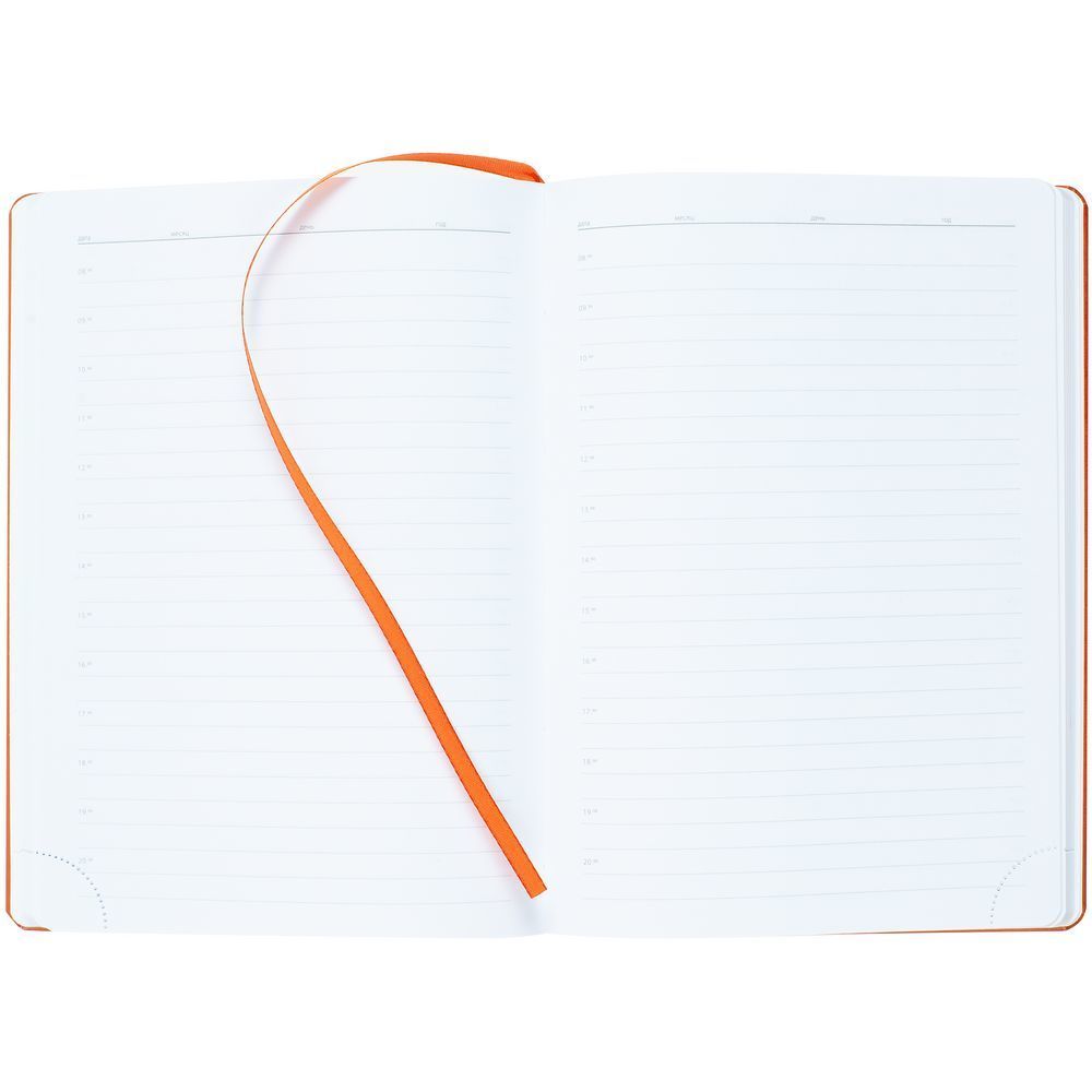 Ежедневник с твердой обложкой, выполнен из материала Brand, оранжевый ОО, дополнен ляссе в цвет обложки.