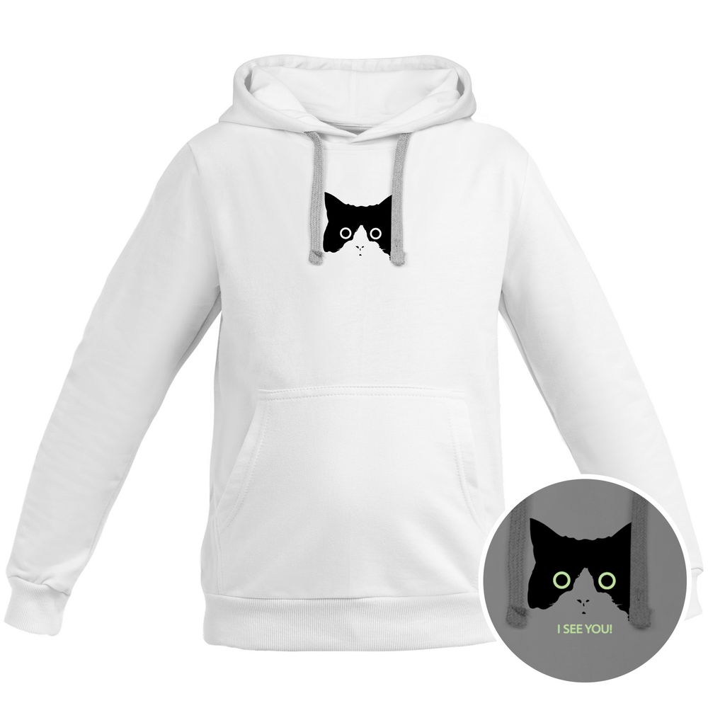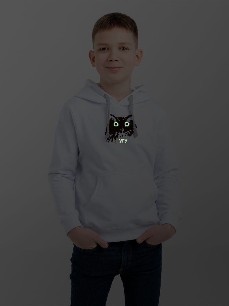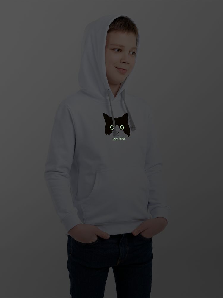 Толстовка с капюшоном детская I See You со светящимся принтом, белая