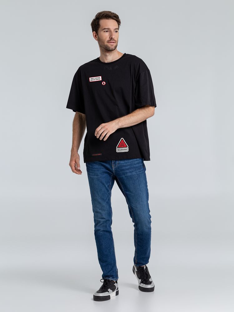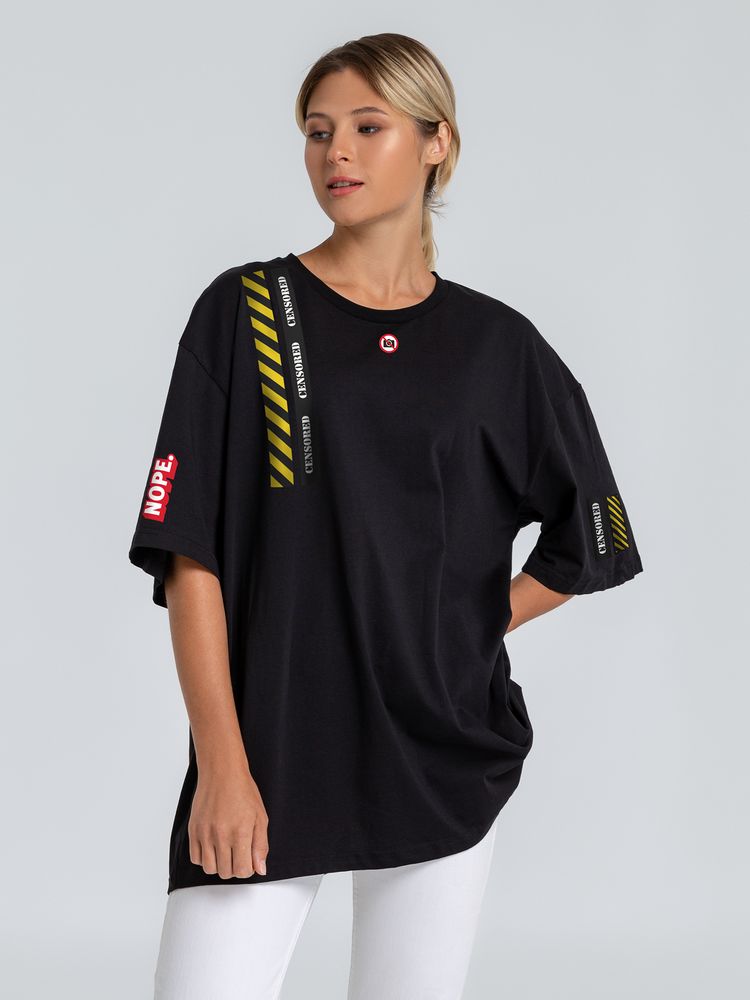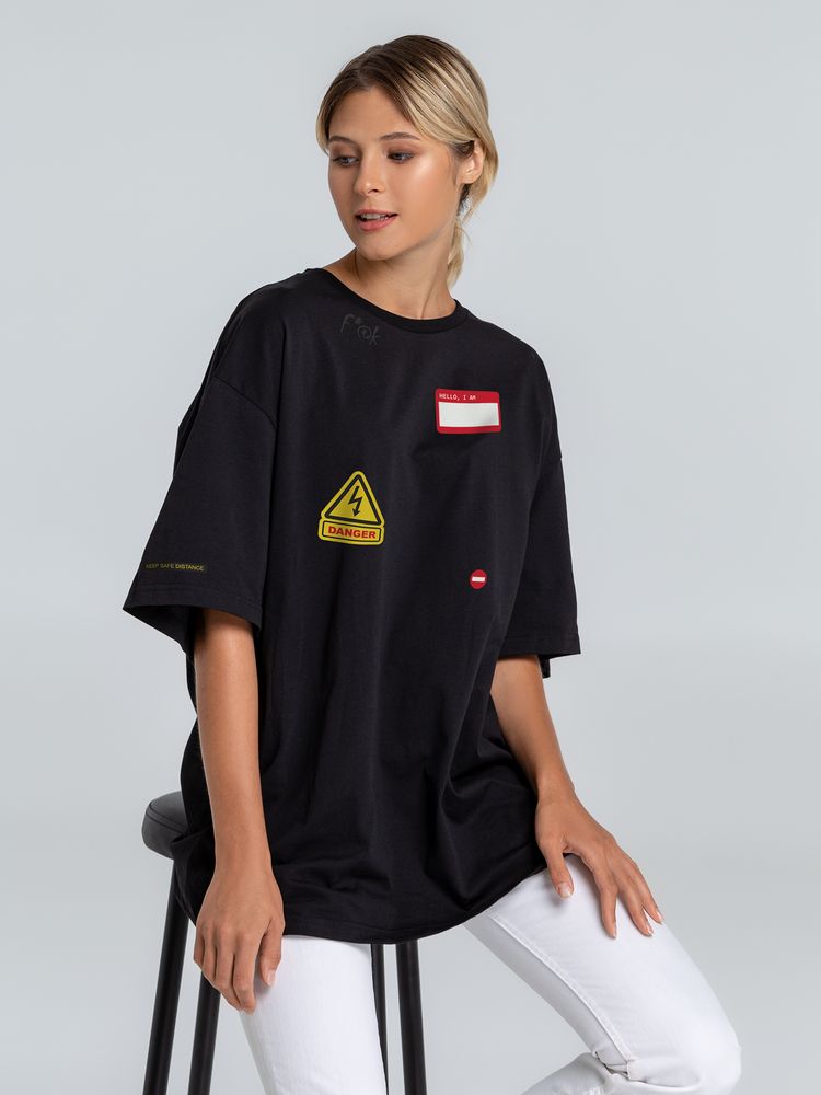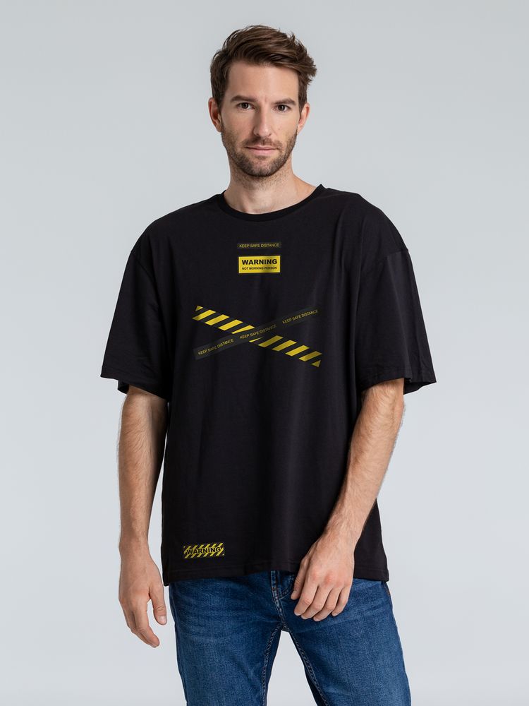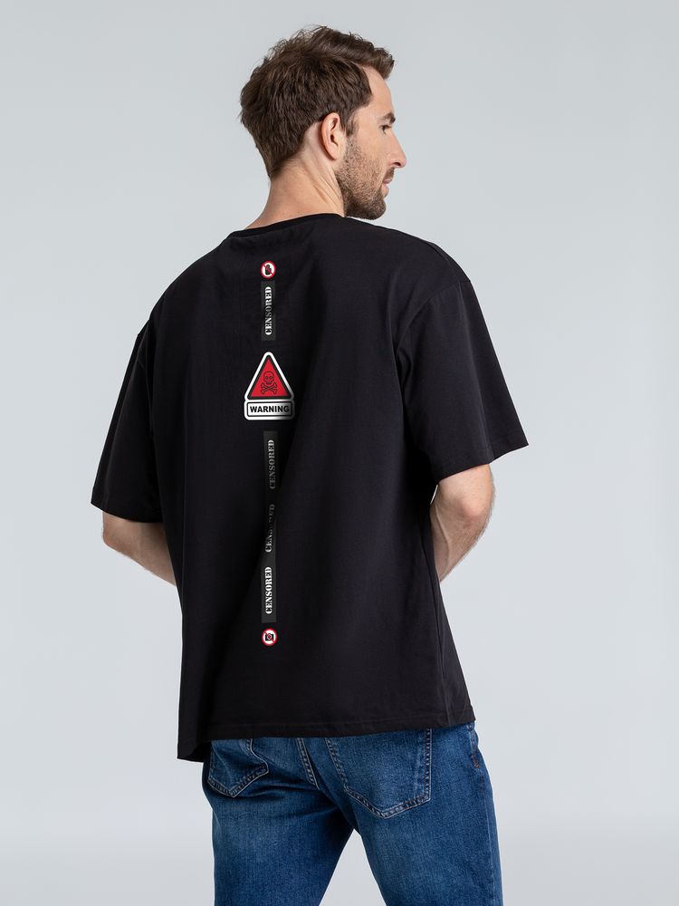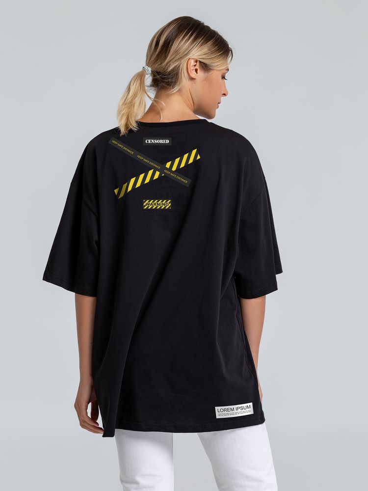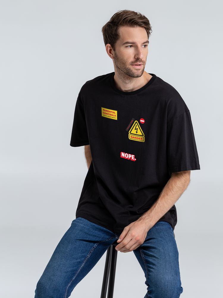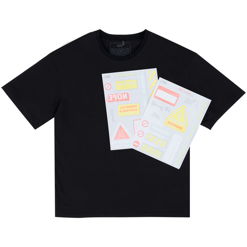 Футболка оверсайз с термонаклейками Cautions, черная