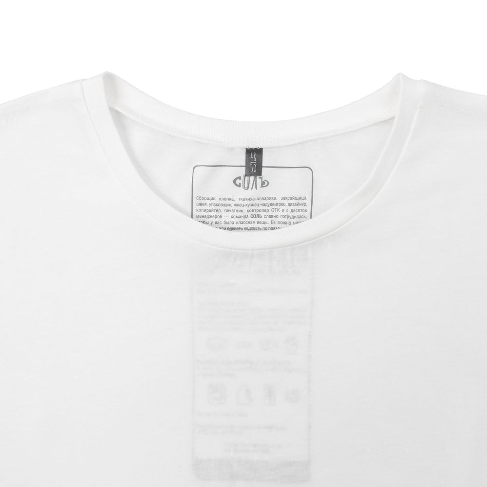 Принт с информацией о бренде и инструкцией по уходу за изделием на изнаночной стороне футболки.