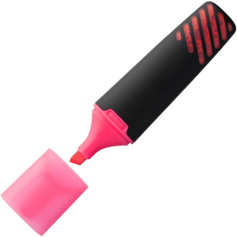 Текстовыделители Liqeo с жидкими водными чернилами пишут плавно, дают насыщенную ровную линию и долго не высыхают. Яркий колпачок позволяет быстро выбрать нужный цвет, а на матовом черном корпусе достаточно места для рекламного сообщения. Полупрозрачные вставки на корпусе служат индикатором уровня чернил.