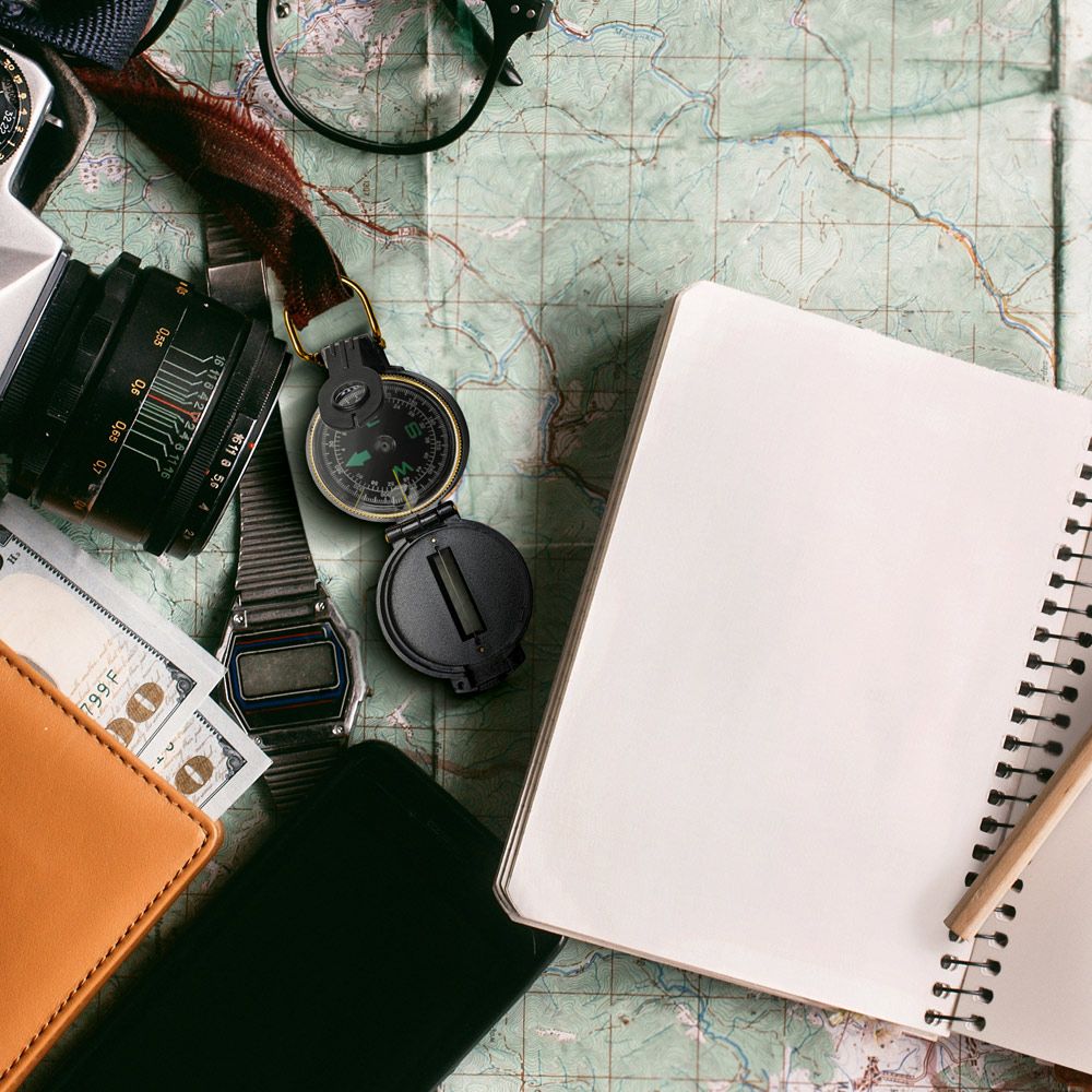 - на крышке компаса имеется прицельная нить;