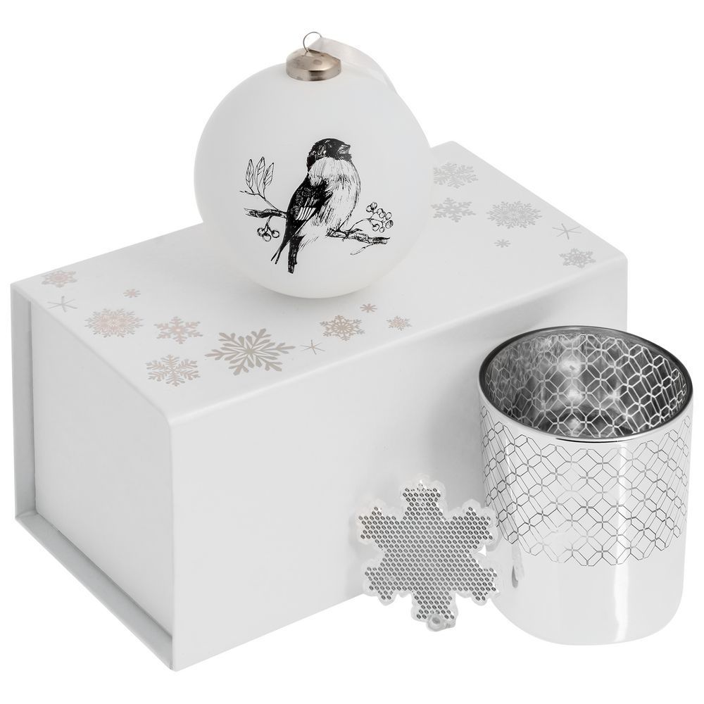 Коробка из переплетного картона, кашированного дизайнерской бумагой Majestic. На крышке выполнено тиснение голографической фольгой.