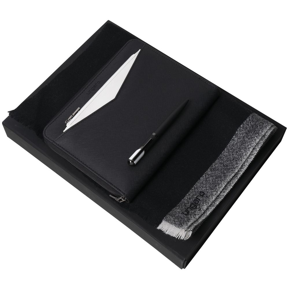 Набор Cosmo: папка с блокнотом А5, ручка и шарф, черный