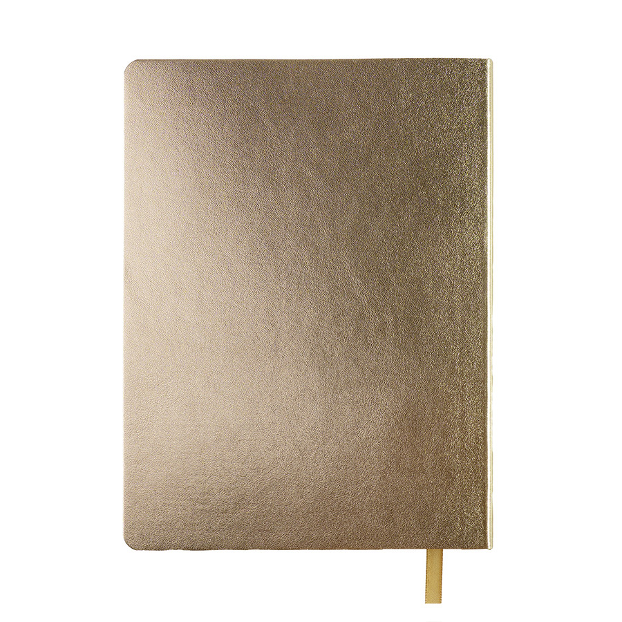 Бизнес-блокнот AURI в золотистом исполнении — сочетание современного делового стиля и премиального дизайна. Мягкий переплёт из нетермоактивного PU‑материала приятен на ощупь и визуально напоминает слиток благородного металла. Золотистый обрез страниц подчеркивает минималистичный образ, превращая рабочий инструмент в статусный аксессуар.Основные характеристики:Формат: 145×205 ммПереплёт: мягкий, из нетермоактивного PU‑материалаОбрез: золотистый, матовыйБлок: 256 страниц, кремовая эвкалиптовая бумага, плотность 70 г м²Разлиновка: клеткаУглы: скруглённыеЛяссе: ширина 7 ммДополнительно: перфорация на последних страницахУпаковка: черный сливбокс из переработанного картона+ бумагаВнутренний блок обеспечивает комфортное письмо и приятный визуальный контраст с золотистой обложкой. Упаковка защищает изделие при транспортировке и подчёркивает ответственное отношение к экологии.