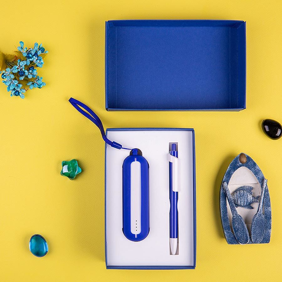 Набор SEASHELL-1: универсальное зарядное устройство (2000 mAh) и ручка в подарочной коробке