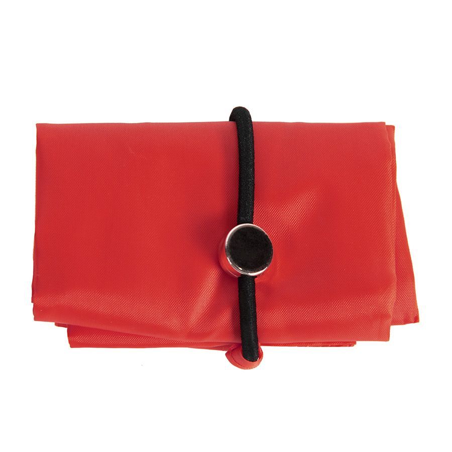 Цвет, близкий к Pantone Red 185 C Легкая и практичная складная сумка для покупок из мягкого полиэстера 190Т. Удобно фиксируется прочной резинкой с пластиковым декором. Незаменимая маленькая помощница освободит ваши руки. Длинные ручки 52 см позволяют повесить сумку на плечо.