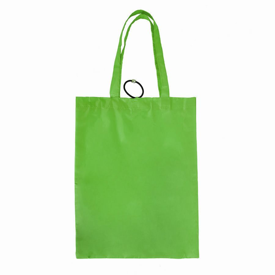 Цвет, близкий к Pantone Green 347 C Легкая и практичная складная сумка для покупок из мягкого полиэстера 190Т. Удобно фиксируется прочной резинкой с пластиковым декором. Незаменимая маленькая помощница освободит ваши руки. Длинные ручки 52 см позволяют повесить сумку на плечо.