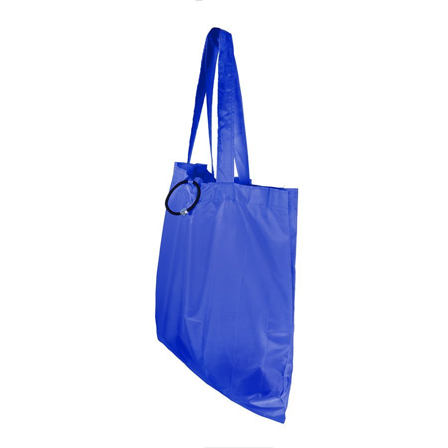 Цвет, близкий к Pantone Reflex Blue C Легкая и практичная складная сумка для покупок из мягкого полиэстера 190Т. Удобно фиксируется прочной резинкой с пластиковым декором. Незаменимая маленькая помощница освободит ваши руки. Длинные ручки 52 см позволяют повесить сумку на плечо.