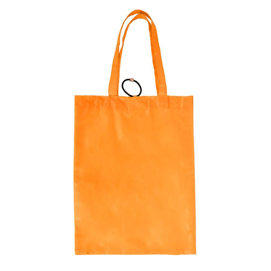 Цвет, близкий к Pantone Orange 21 C Легкая и практичная складная сумка для покупок из мягкого полиэстера 190Т. Удобно фиксируется прочной резинкой с пластиковым декором. Незаменимая маленькая помощница освободит ваши руки. Длинные ручки 52 см позволяют повесить сумку на плечо.