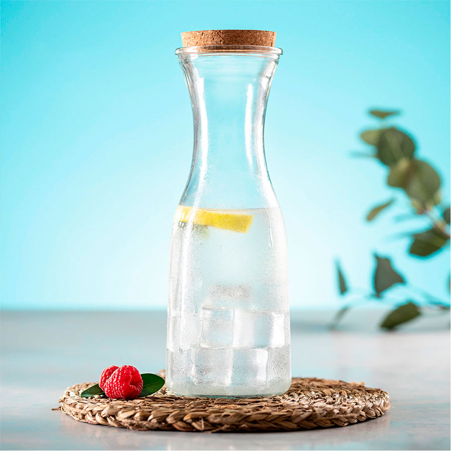 Бутылка из стекла с пробкой из натурального пробкового дерева, особенно рекомендуется для воды и вина. Индивидуальная упаковка - коробка из дизайнерского картона