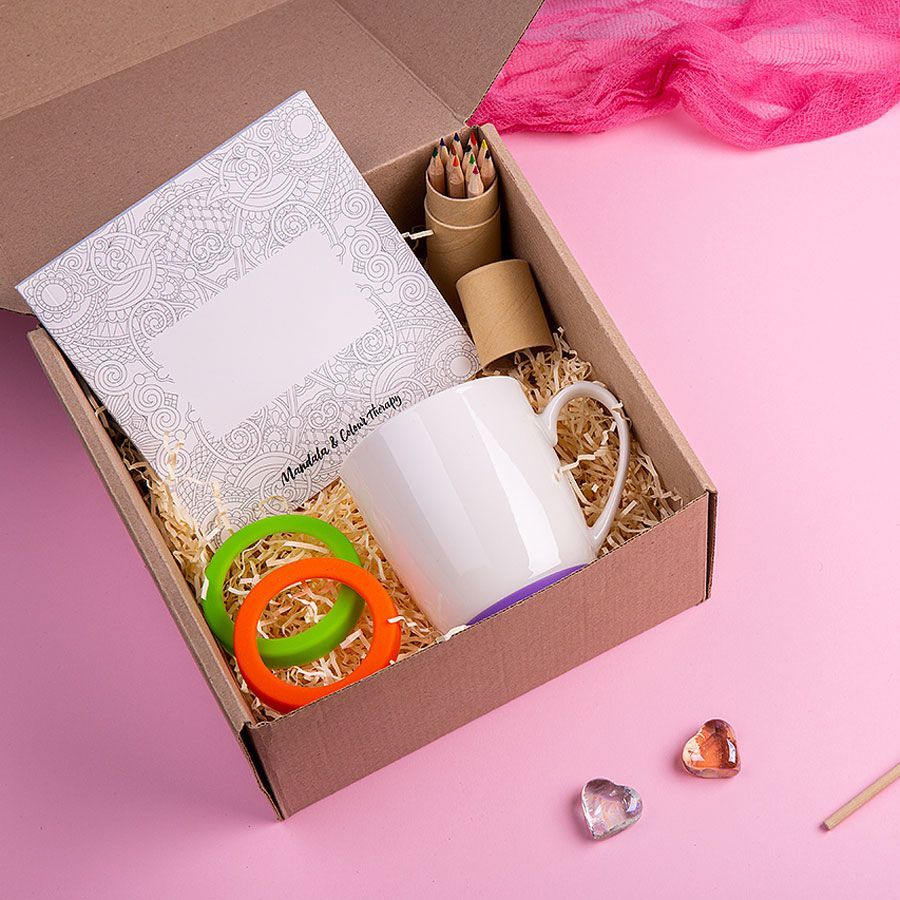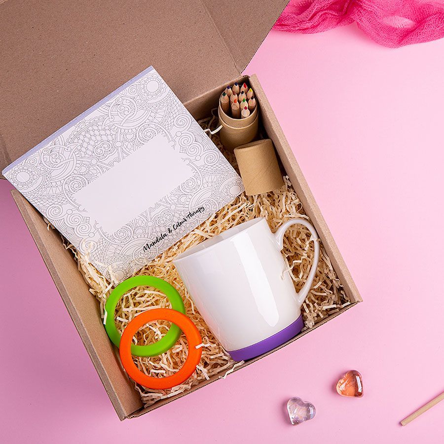В набор входят: альбом с раскрасками RUDEX (арт. 345564), набор цветных карандашей "Игра цвета" (арт. 23901), кружка FUN (арт. 25700), 4 сменных донышка к кружке (арт. 25701), коробка BOX (21016), стружка Альбом RUDEX 48 листов - 96 дизайнов для раскрашивания Размер: 15х15х0.7 см. Материал: картон, бумага. Деревянные карандаши "Игра цвета" в футляре Карандаши заточены. В наборе 12 цветов: желтый, оранжевый, красный, розовый, фиолетовый, бордовый, голубой, синий, светло-зеленый, зеленый, коричневый, черный Размер футляра: 3,5х10,3 см, материал: картон Кружка FUN Объем: 400 мл Размер: высота 10 см, диаметр 8,5 см Материал: фарфор В комплекте 4 сменных силиконовых донышка для кружки: желтое, синее, зеленое, красное Коробка BOX Выполнена из плотного бурого картона (МГК), который отлично вписывается в тренд крафтовой упаковки. Безопасный и экологически чистый материал. Цвет: натуральный Размер: внутренний: 20,5х21х11 см, внешний: 22х21,5х11 см. ВНИМАНИЕ! Набор поставляется в разобранном виде.