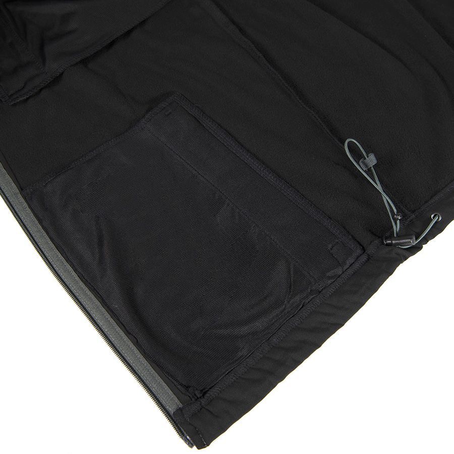 Основная ткань: цвет, близкий к Pantone 289 С, подкладка: цвет, близкий к Pantone 2965 C Двухслойная ткань softshell. Водонепроницаемый и дышащий женский жилет. Приталенная модель. Небольшой воротник-стойка. Обратная контрастная пластиковая молния со съемным пуллером. Один нагрудный и два боковых кармана с обратной молнией. Утягивающий шнурок по низу жилета.