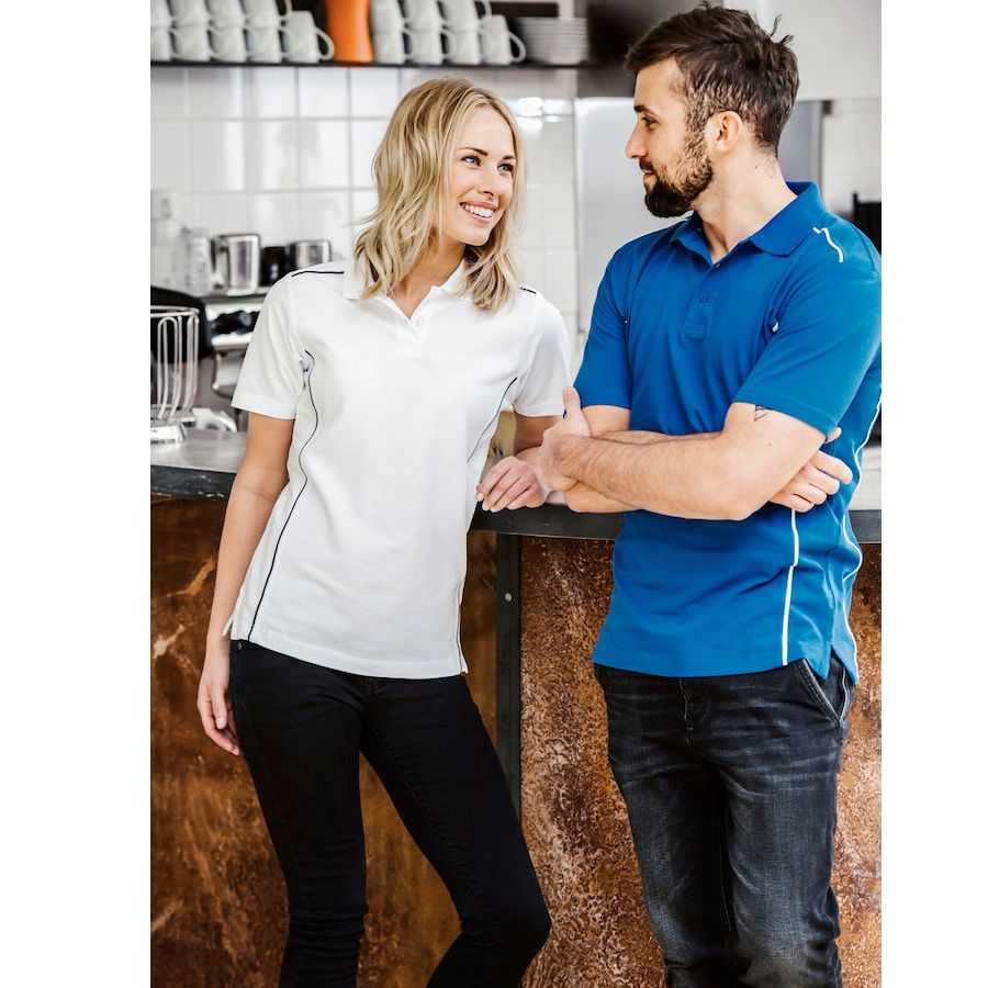 Эластичный, держащий форму воротник. Усиленная планка с перламутровыми пуговицами. Контрастный кант в швах подчеркивает приталенный силуэт.