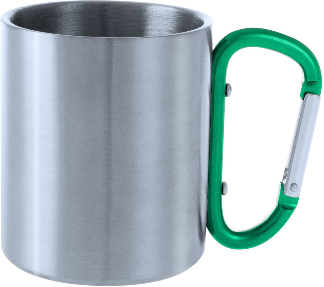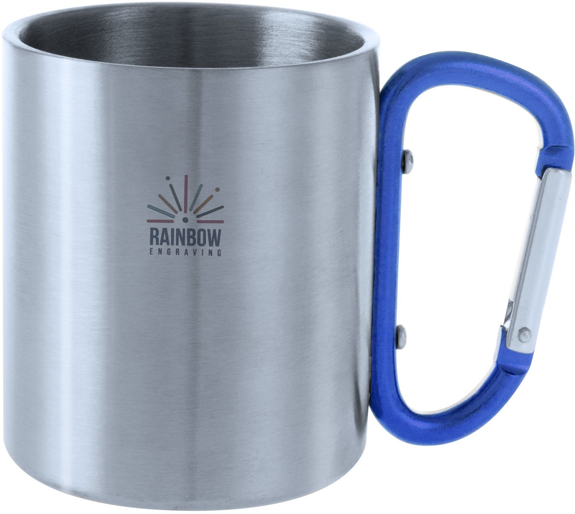 Кружка из нержавеющей стали на 200 мл с цветным карабином. Поставляется в подарочной коробке.