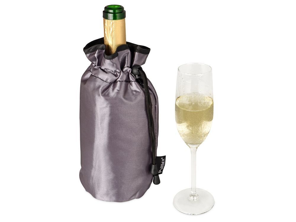 Данный охладитель снаружи покрыт плотной тканью, которая придает ему элегантный и стильный вид. Внутренняя часть охладителя сделана из теплоизоляционного материала с добавлением охлаждающего геля, который предотвращает нагревание игристого вина . Сумка закрепляется ремешком в верхней части, выполняя при этом двойную функцию - фиксация бутылки и сохранение холода в мешочке.