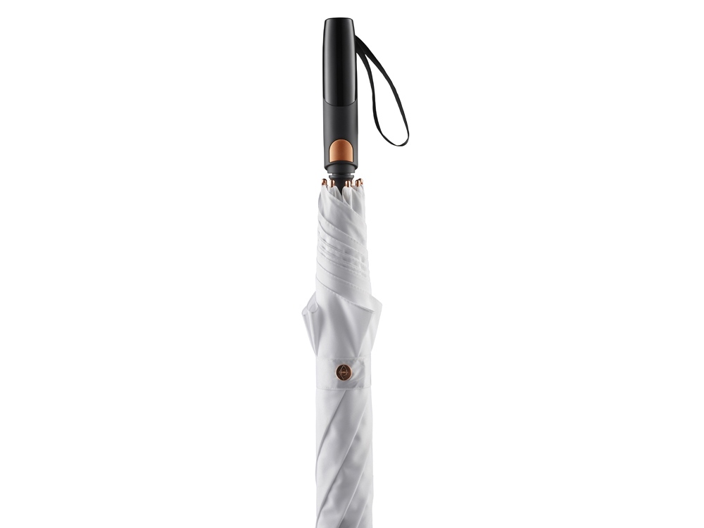Зонт-трость с большим куполом укроет от дождя двух человек. Каркас изготовлен из особо прочного алюминия. Детали из алюминия окрашены в популярные цвета и стильно выглядят. Зонт плавно раскрывается нажатием кнопки на ручке. В ручку интегрирован эластичный шнур для большего удобства.