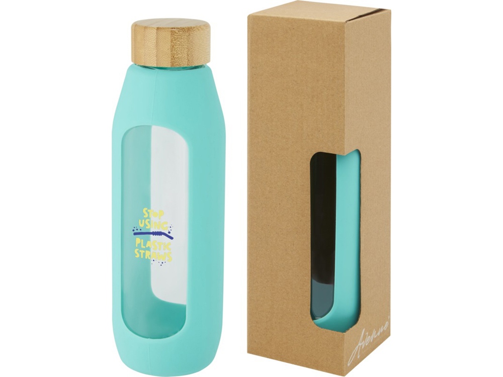 Экологичная многоразовая бутылка для воды, которая сохраняет воду чистой. Бутылка изготовлена из прочного боросиликатного стекла без содержания вредных химических веществ, благодаря чему сохраняется настоящий вкус чистой свежей воды. Имеет силиконовый держатель и герметичную крышку из органического бамбука. Протестировано и одобрено согласно немецкому законодательству о безопасности пищевых продуктов (LFGB), а также проверено на содержание фталатов согласно нормам REACH. Объем 600 мл. Сняв держатель и крышку, бутылку можно мыть в посудомоечной машине. В подарочной коробке из переработанного картона.