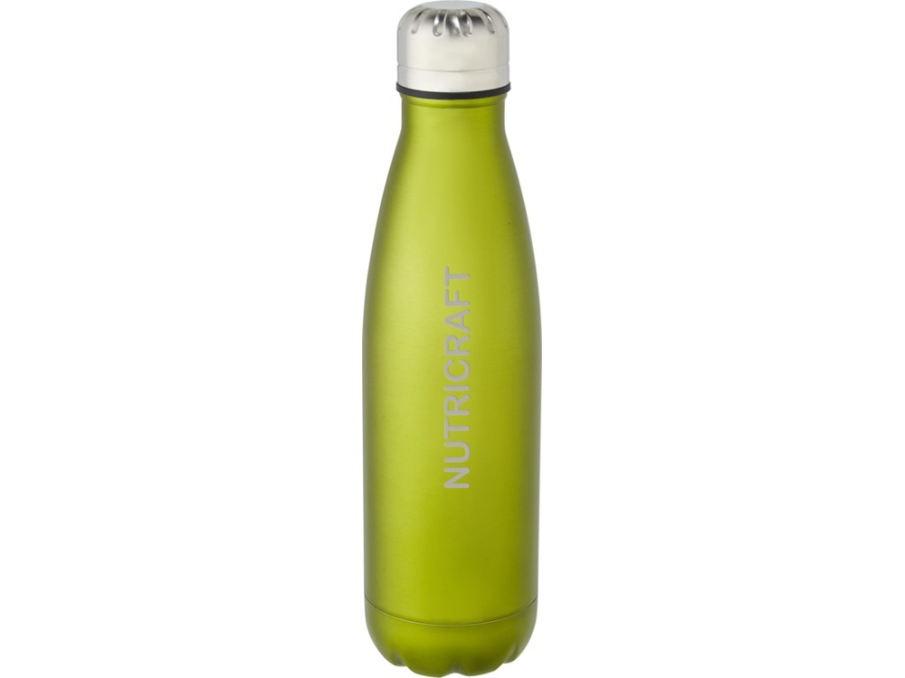 Бутылка из нержавеющей стали с вакуумной изоляцией и культовым дизайном. Благодаря изоляции и нержавеющей стали 18/8 напитки несколько часов остаются горячими или холодными. Протестировано и одобрено согласно немецкому законодательству о безопасности пищевых продуктов (LFGB), а также проверено на содержание фталатов согласно нормам REACH. Эта элегантная бутылка для воды, основание которой помещается в большинство подстаканников, является идеальным рекламным продуктом. Объем 500 мл. В коробке из переработанного картона. Нержавеющая сталь.