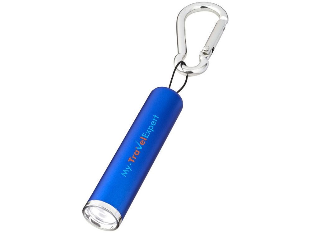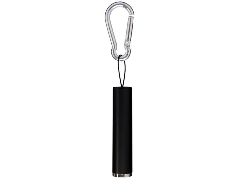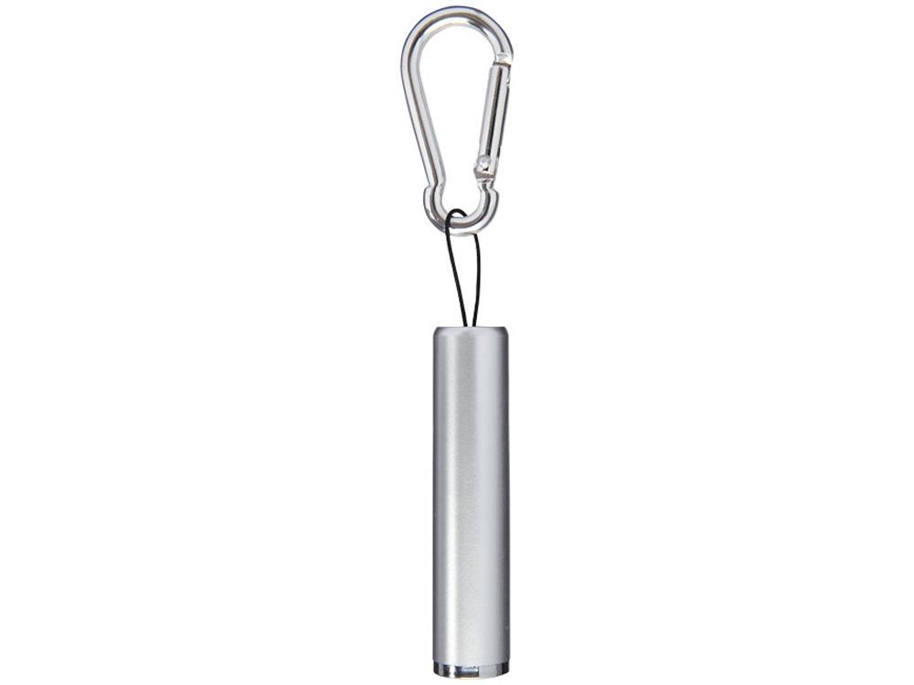 Фонарик с карабином Ostra. Одинарный яркий диодный фонарик с двигающейся кнопкой вкл/выкл в анодированном корпусе. В комплекте батарейки, карабин не предназначен для скалолазания. Алюминий.
