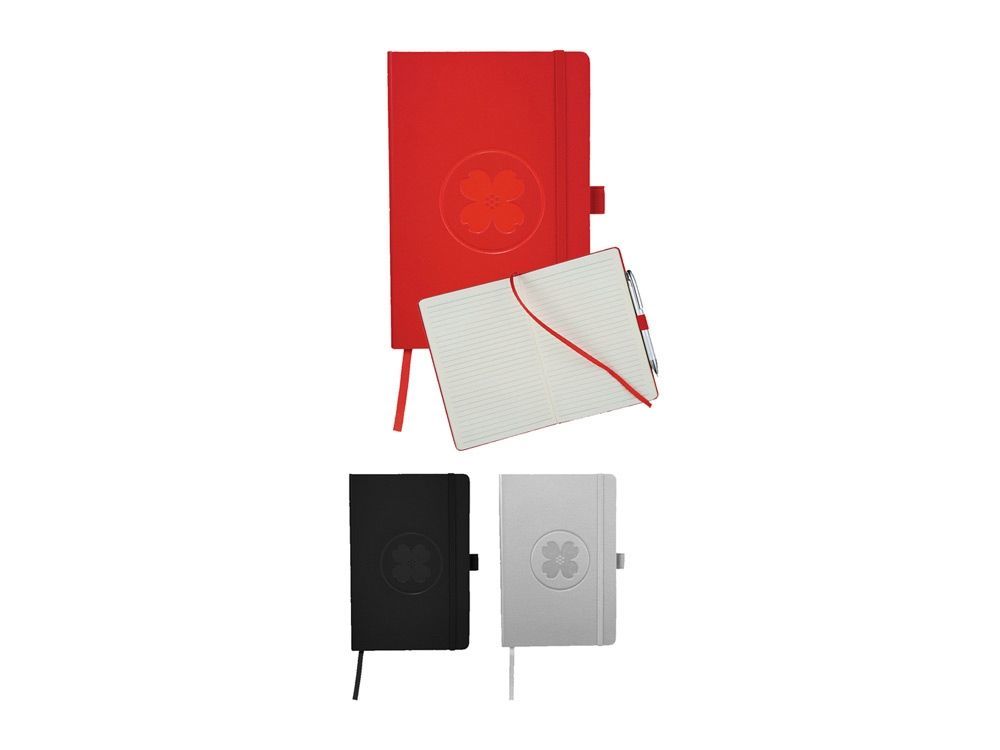 Офисный блокнот Flex. Блокнот со сгибающейся задней обложкой для легкости листать страницы. Эластичная застежка, тканая закладка и 80 листов линованной бумаги (80 г/м²). Запатентован. Картон.