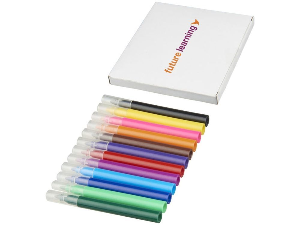 12 цветных маркеров в бумажной подарочной упаковке. На маркерах невозможен принт.