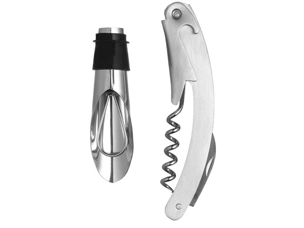 Набор для вина из 2 предметов. Набор для вина включает штопор и пробку-лейку. Металл.