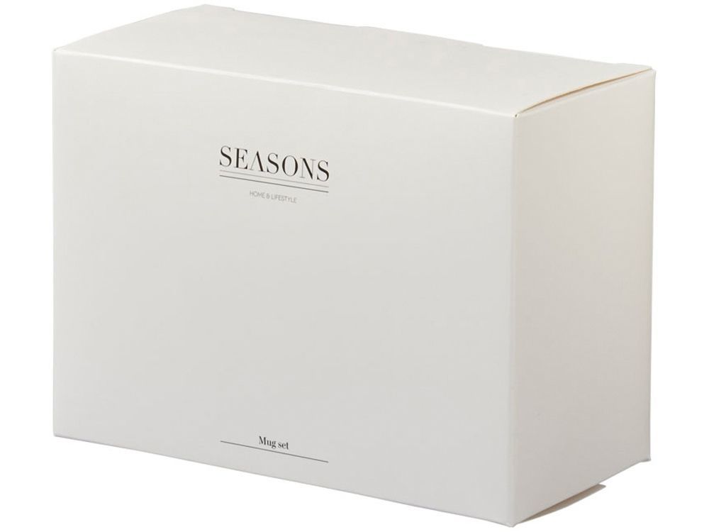 Подарочный набор, поставляемый в коробке бренда Seasons, состоит из двух керамических чашек в сдержанной, классической форме и костеров под них. Костеры сделаны из экологически чистого, пробкового материала, они защитят поверхность мебели от царапин и конденсата.