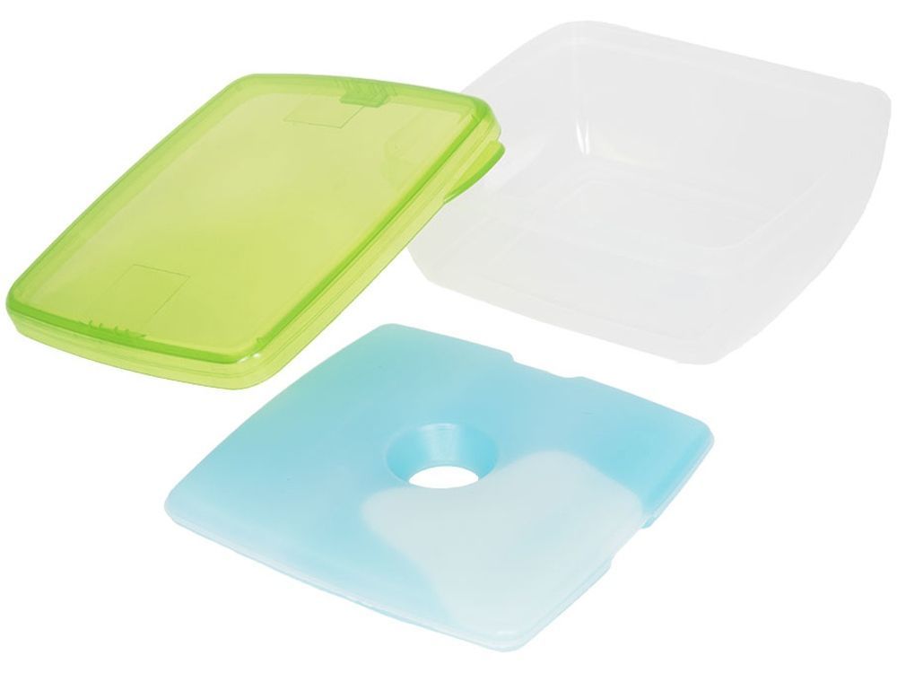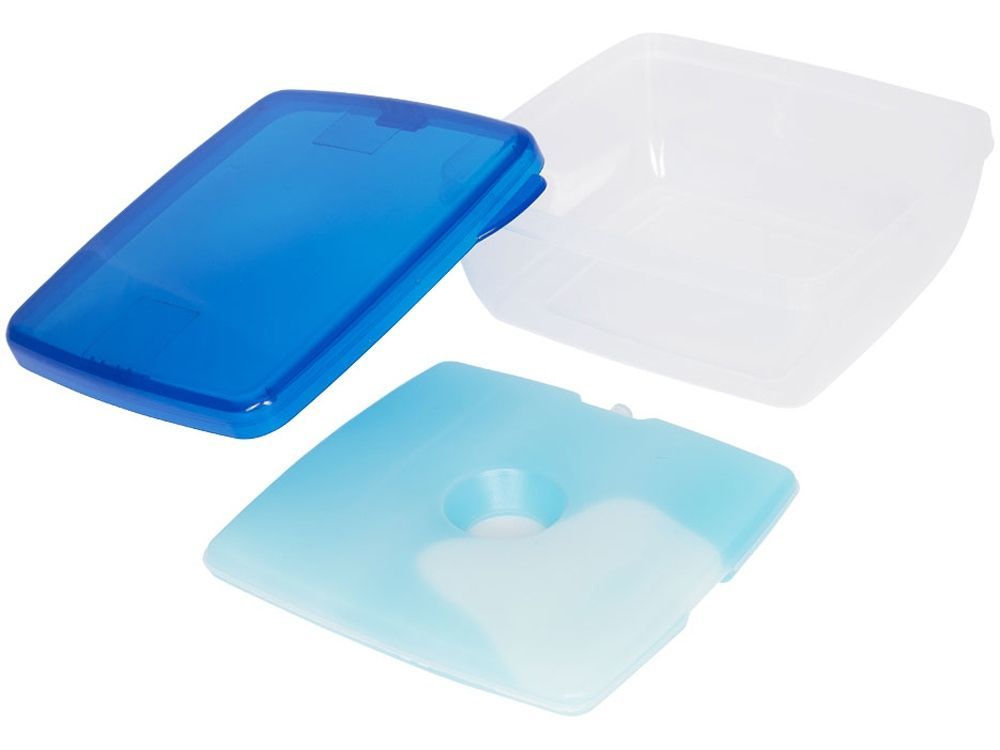 Ланч-бокс с блоком для льда. Ланч-бокс, включая съемный блок для охлаждения с прозрачной крышкой, который сохранит ваш ланч прохладным и свежим. Пригоден для мытья в посудомоечной машине и нагревания в микроволновой печи. Предлагается три цвета. ПП-пластик.