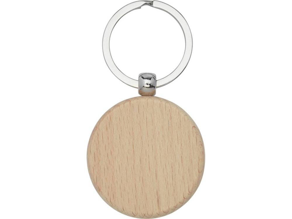 Круглый брелок из буковой древесины, поставляемый в коричневой упаковке из шрифтовой бумаги. Брелок имеет диаметр 4 см. Пригоден для гравировки.