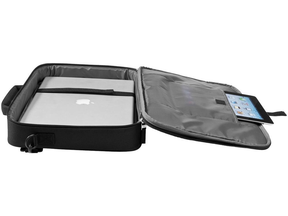 Сумка для ноутбука 15,6 и iPad. Эксклюзивная сумка для ноутбука с тонким компактным чехлом с отдельными защитными карманами для ноутбука с диагональю до 15,6 и iPad или планшета 10,1. В переднем кармане можно хранить объемные кабели, которые компактно помещаются на дне. Органайзер в переднем кармане со специальным отделением для внешнего жесткого диска, ручек и других принадлежностей. Передний карман на молнии для защиты смартфона. Удобный съемный плечевой ремень и ручка с мягкой подкладкой для удобного ношения сумки. Багажный ремень для надежного крепления сумки к чемодану на роликах.