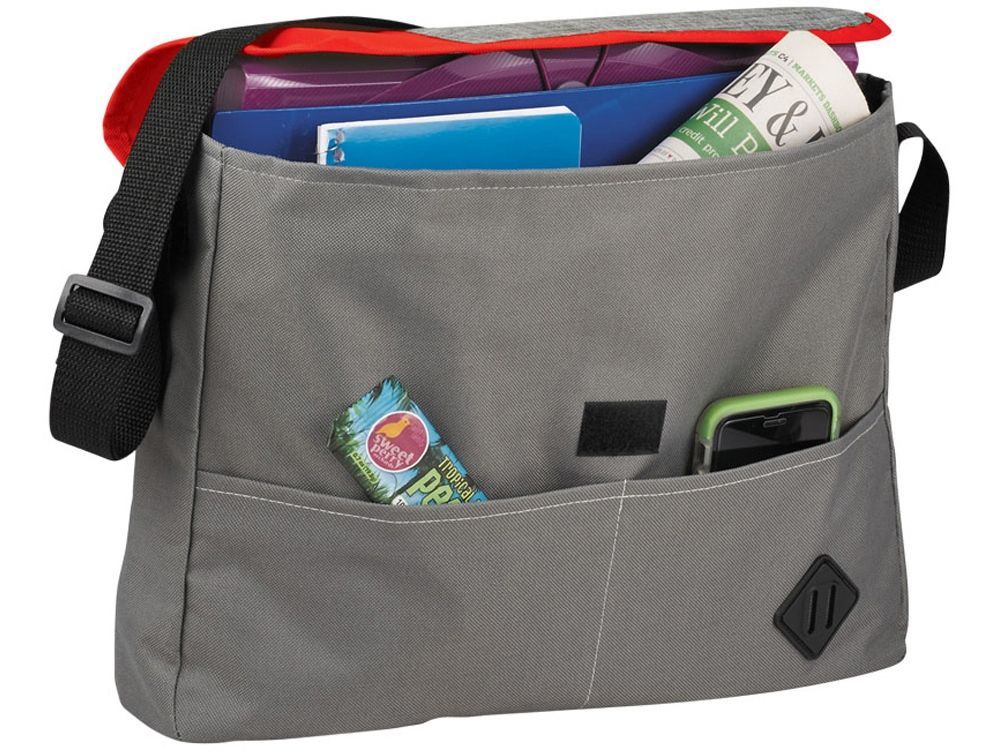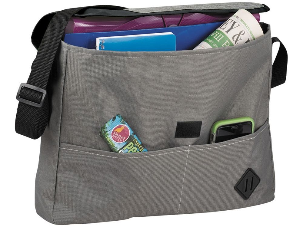 Сумка Offset. Большое основное отделение закрывается на клапан с липучкой, карман из сетки внутри, для удобного хранения документов. Открытые карманы спереди для мелочей и регулируемый ремень на плечо. Полиэстер 600D.