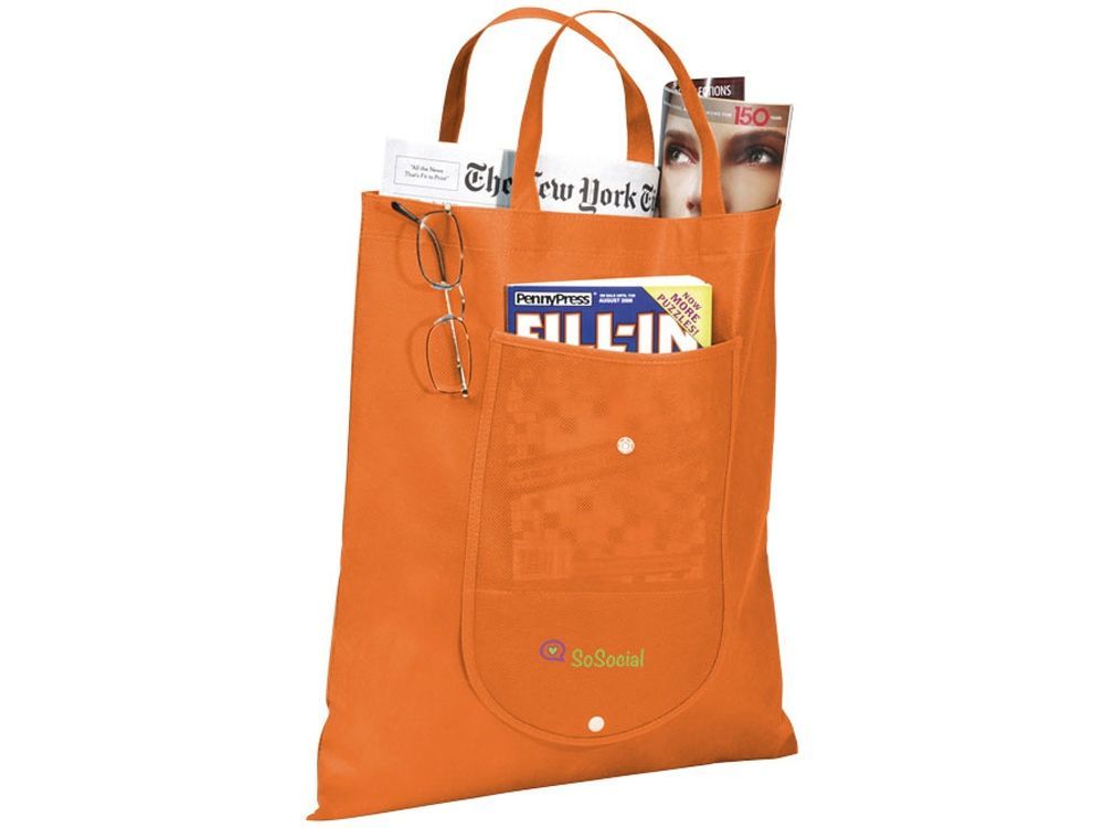 Складная сумка Maple из нетканого материала. Складная сумка с открытым основным отделением и открытым карманом спереди. Застежка- пластиковая кнопка. Многоразовая сумка- отличная альтернатива пластиковому пакету. Высота ручек 15 см. Размер в сложенном состоянии: ширина 20см, высота 11 см. Артикул поставляется в разложенном виде, плоский. 80г нетканый полипропилен.