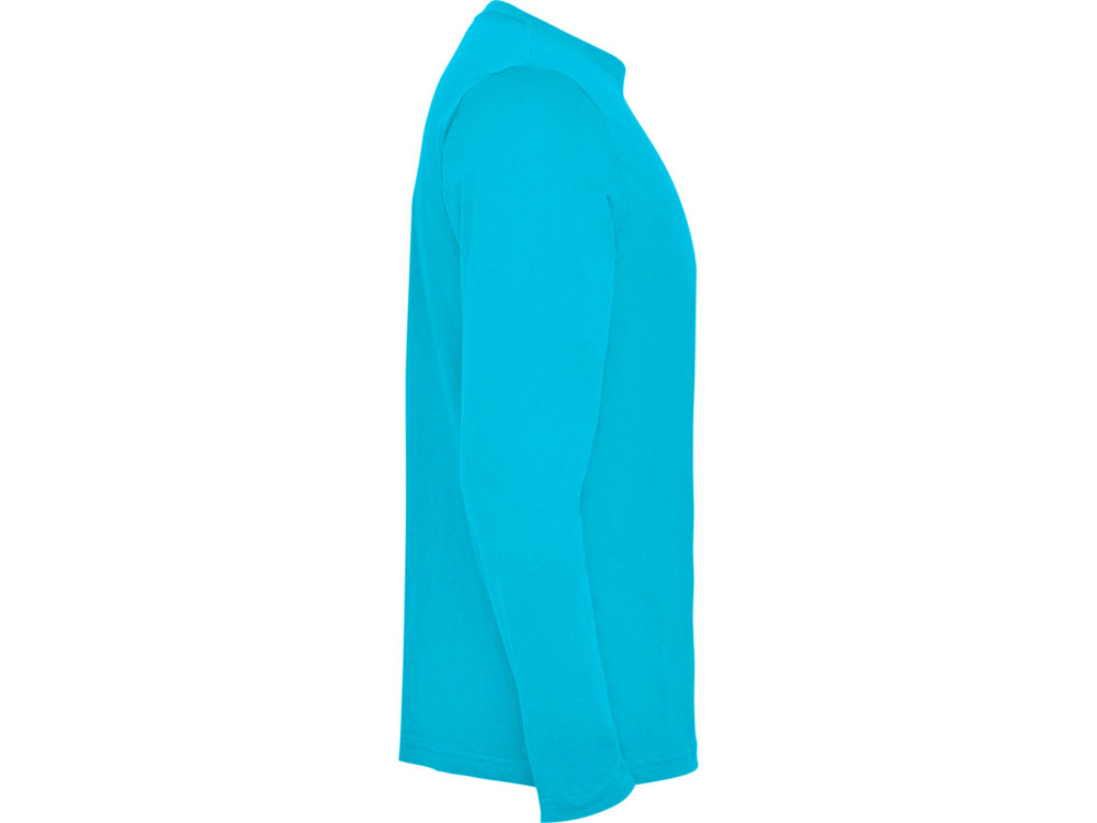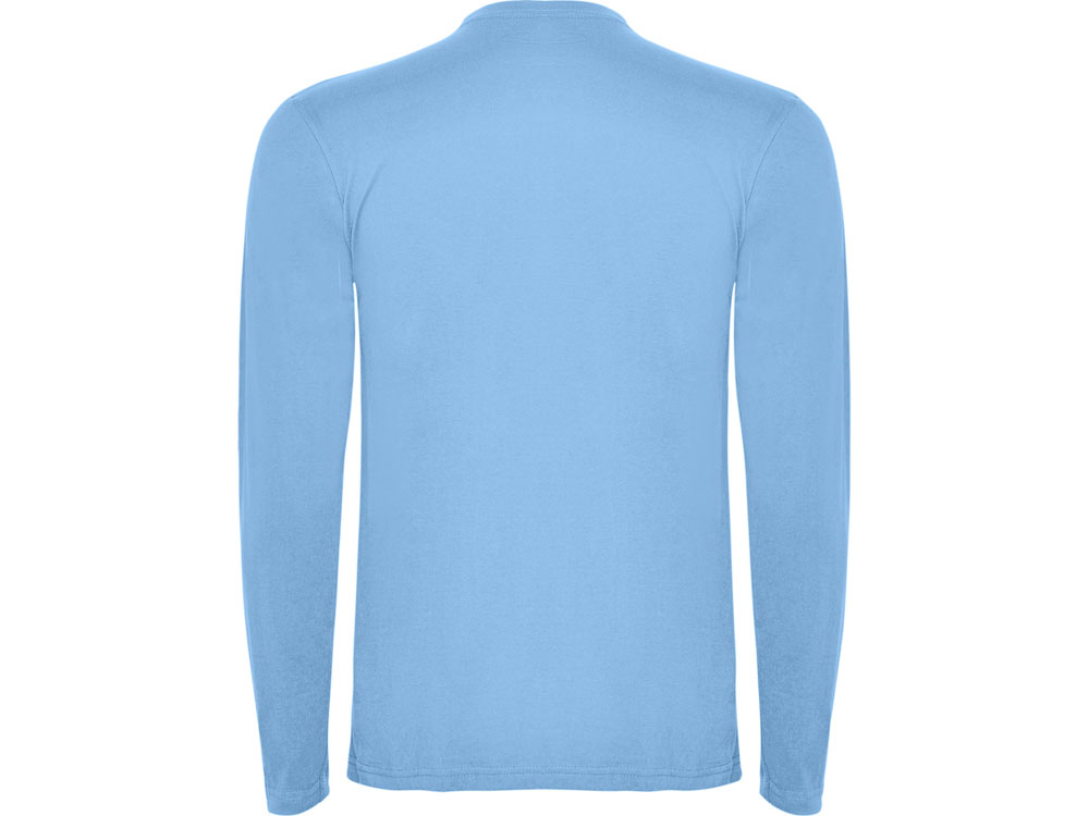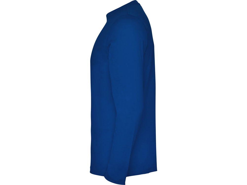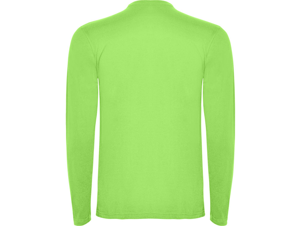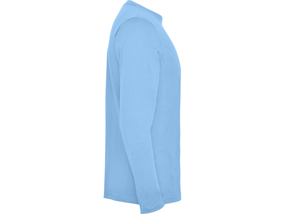 Детская футболка с длинным рукавом без швов. Горловина с двойной отстрочкой дополнительно укреплена по спинке тесьмой. Модель без манжет.
