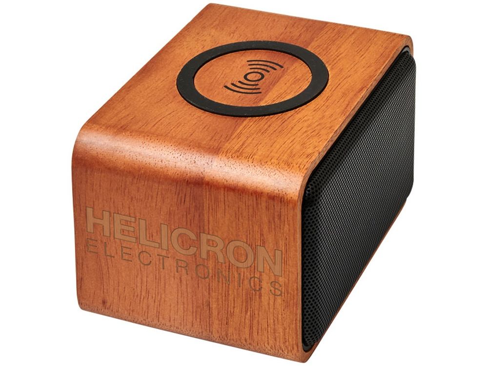 Динамик Wooden с беспроводной зарядкой. Непревзойденное техническое устройство. Динамик Wooden Bluetooth® — идеальное решение для офиса или дома. Динамик мощностью 3 Вт обеспечивает кристально чистое звучание. Кроме того, верхняя часть динамика служит беспроводной зарядкой. На ней можно заряжать любое устройство, поддерживающее технологию беспроводной зарядки. Встроенная батарея на 1200 мАч обеспечивает более 6 часов воспроизведения музыки. Встроенные элементы управления воспроизведением музыки и микрофон для работы без использования рук. Диапазон работы Bluetooth® — 10 м (33 фута). Bluetooth® версии 4.2. Изготовлено из натурального дерева. Поэтому внешний вид разных динамиков может слегка отличаться. Поставляется в подарочной коробке премиум-класса Avenue. АБС-пластик и красное дерево.