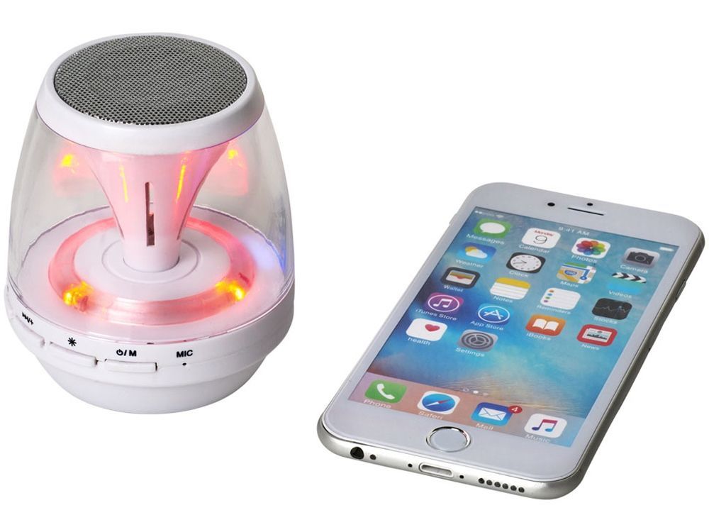 Колонка Rave Light Up Bluetooth®. Светодиодная портативная колонка с функцией Bluetooth® со встроенным перезаряжаемым аккумулятором для 4 часов непрерывной музыки. Во время воспроизведения музыки колонка светится семью цветами: красным, зеленым, синим, розовым, оранжевым, желтым, фиолетовым. Колонка подключается через Bluetooth® или 3,5 мм аудиокабель. Аудиокабель и кабель для зарядки включены в комплект. Пластик. 126.